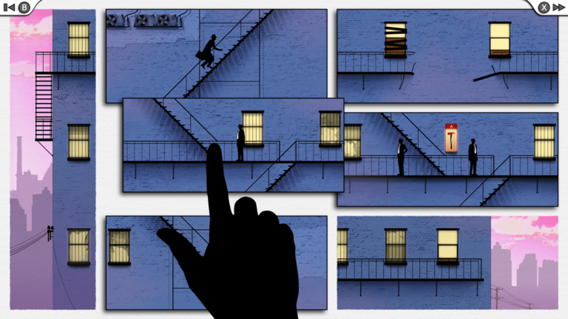 Vous devez faire glisser les panneaux de la bande dessinée pour changer ce qui se passe. Dans une scène, vous permutez des rebords pour que votre héros puisse les parcourir sans se faire arrêter par les gardes ou tomber dans un trou.